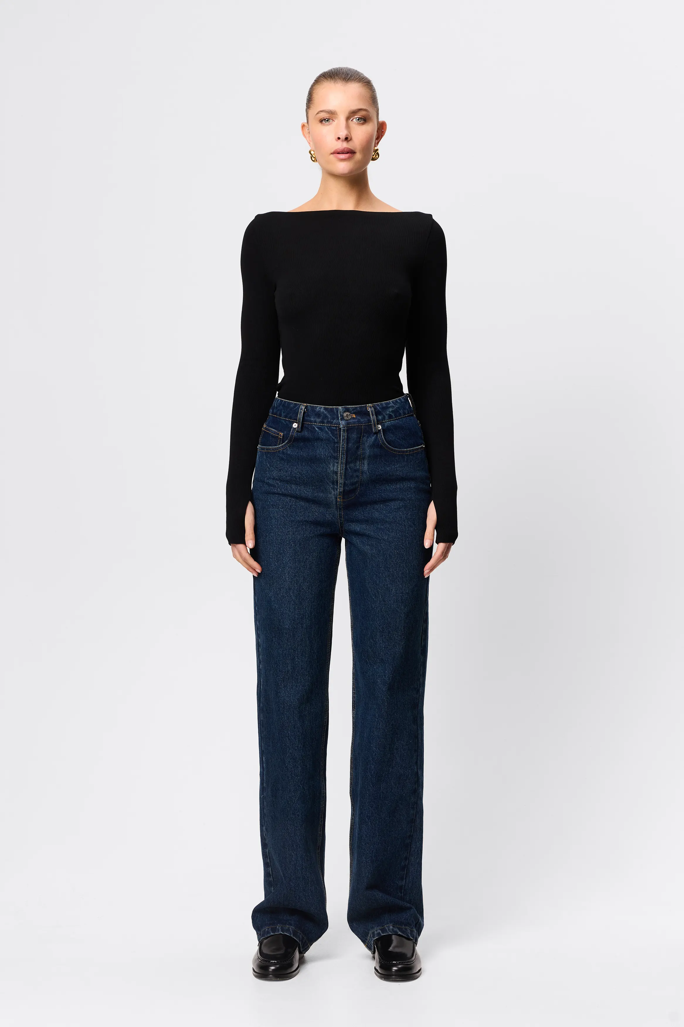 The Camden Top in Black, is an evolution of our ever-popular Brooklyn Top. Crafted from a soft, double-layered ribbed jersey fabrication, this top offers a generous amount of stretch featuring a boat neckline and long sleeves with thumb holes. Perfect for keeping you warm during the cooler months, this top can be paired with existing pieces in your wardrobe and seamlessly goes from day to night.