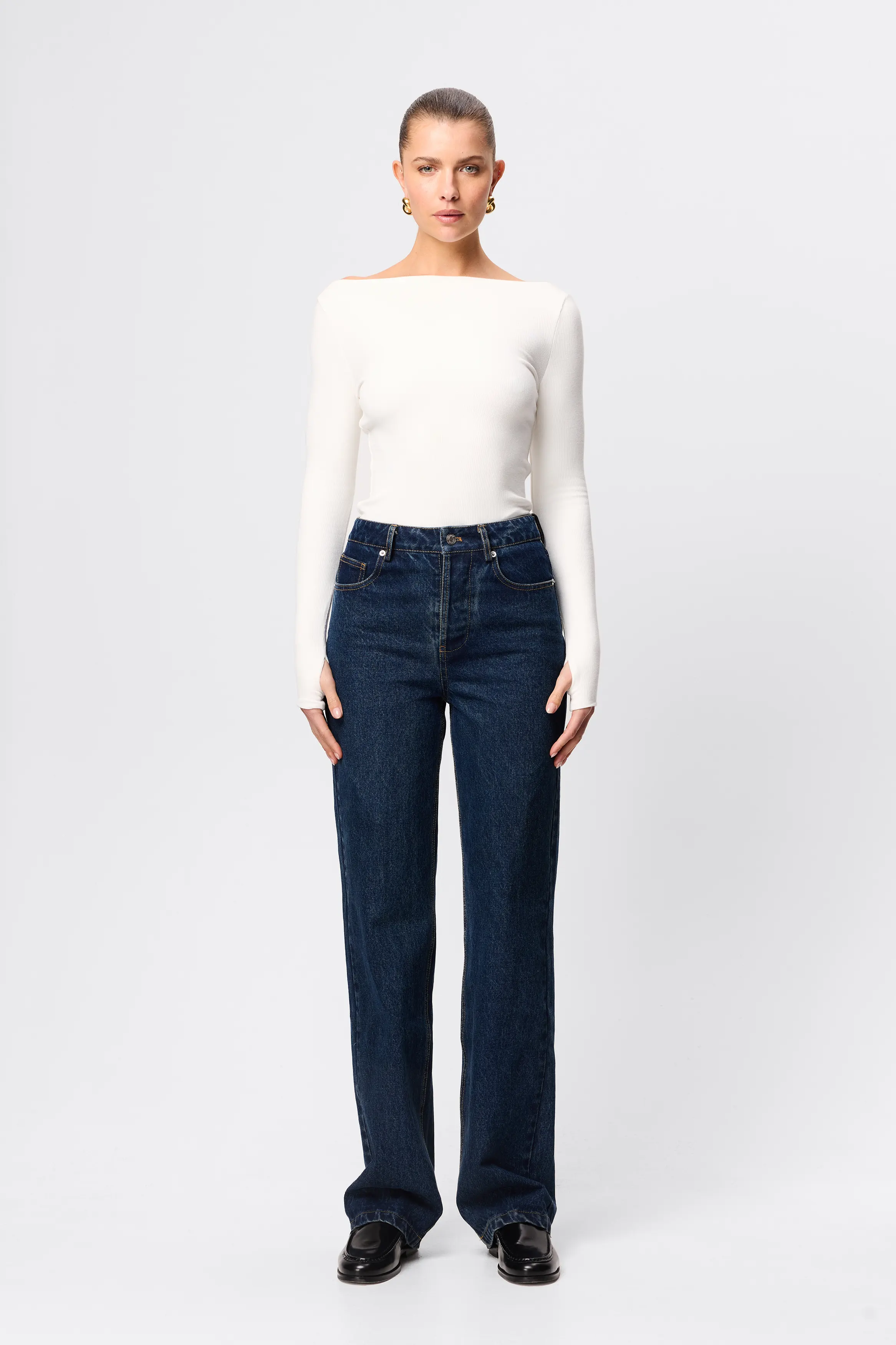 The Camden Top in White, is an evolution of our ever-popular Brooklyn Top. Crafted from a soft, double-layered ribbed jersey fabrication, this top offers a generous amount of stretch featuring a boat neckline and long sleeves with thumb holes. Perfect for keeping you warm during the cooler months, this top can be paired with existing pieces in your wardrobe and seamlessly goes from day to night.