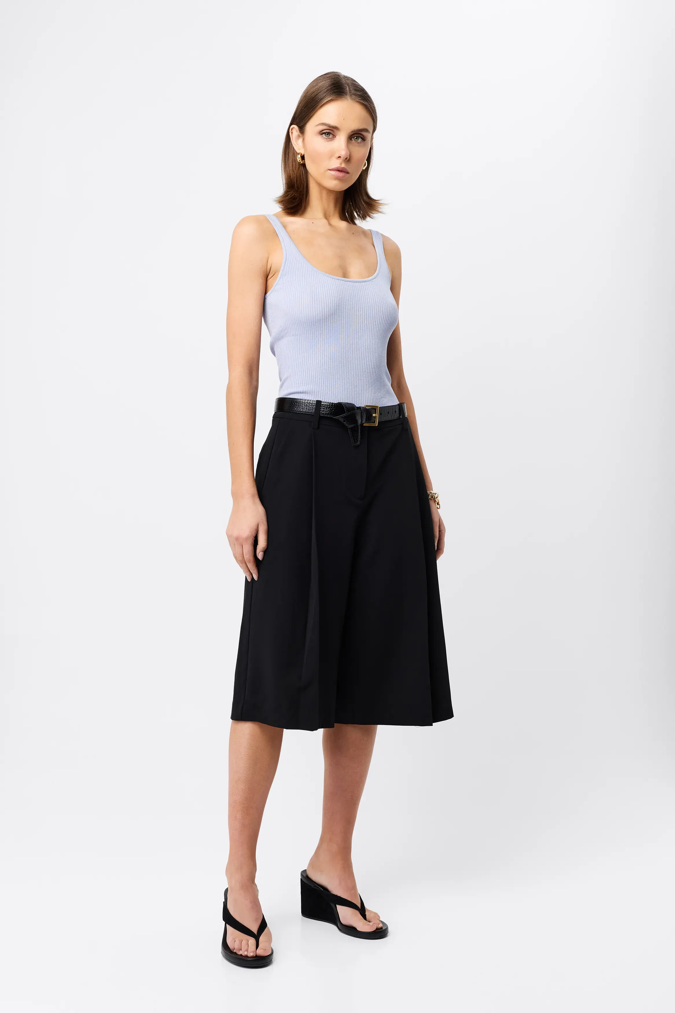 The Fine Line Knit Tank in Sky Blue blends elegance and ease in a timeless silhouette. Crafted from high-quality ribbed knit fabric, it features thin straps and a scoop neckline at both the front and back for a flattering, minimalist finish. Designed to transition effortlessly from casual to elevated occasions, this singlet is a versatile staple you'll wear on repeat. Style it under tailoring for a refined look or wear it solo for understated, everyday polish.