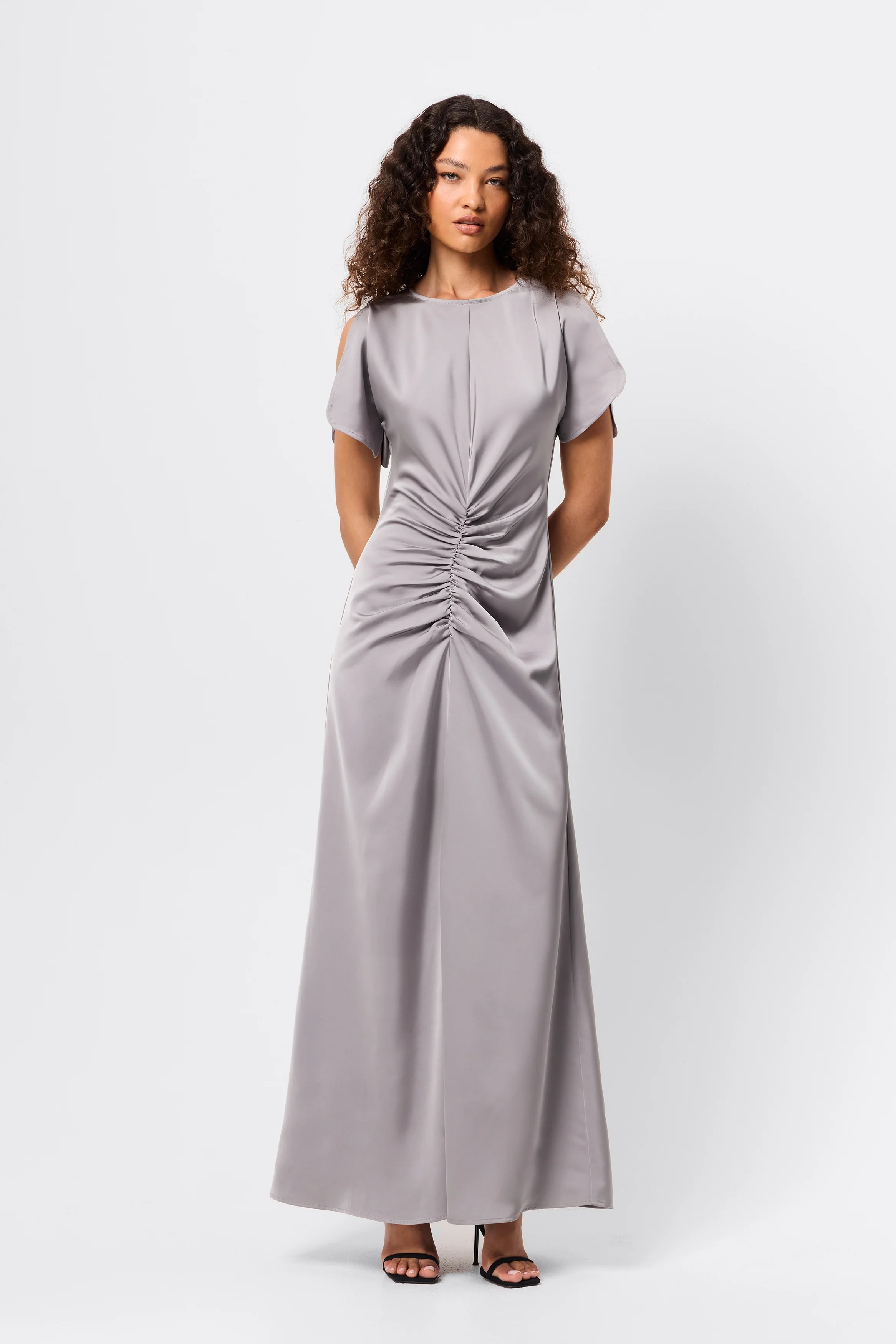 The Forgive & Forget Maxi Dress in pewter grey delivers elegance with a contemporary twist. Featuring a round neckline, split flutter sleeves, and fixed ruching detail this dress has a body-skimming silhouette for a flattering fit. Ideal for events, this dress can be styled for a range of occasions, both day and night.