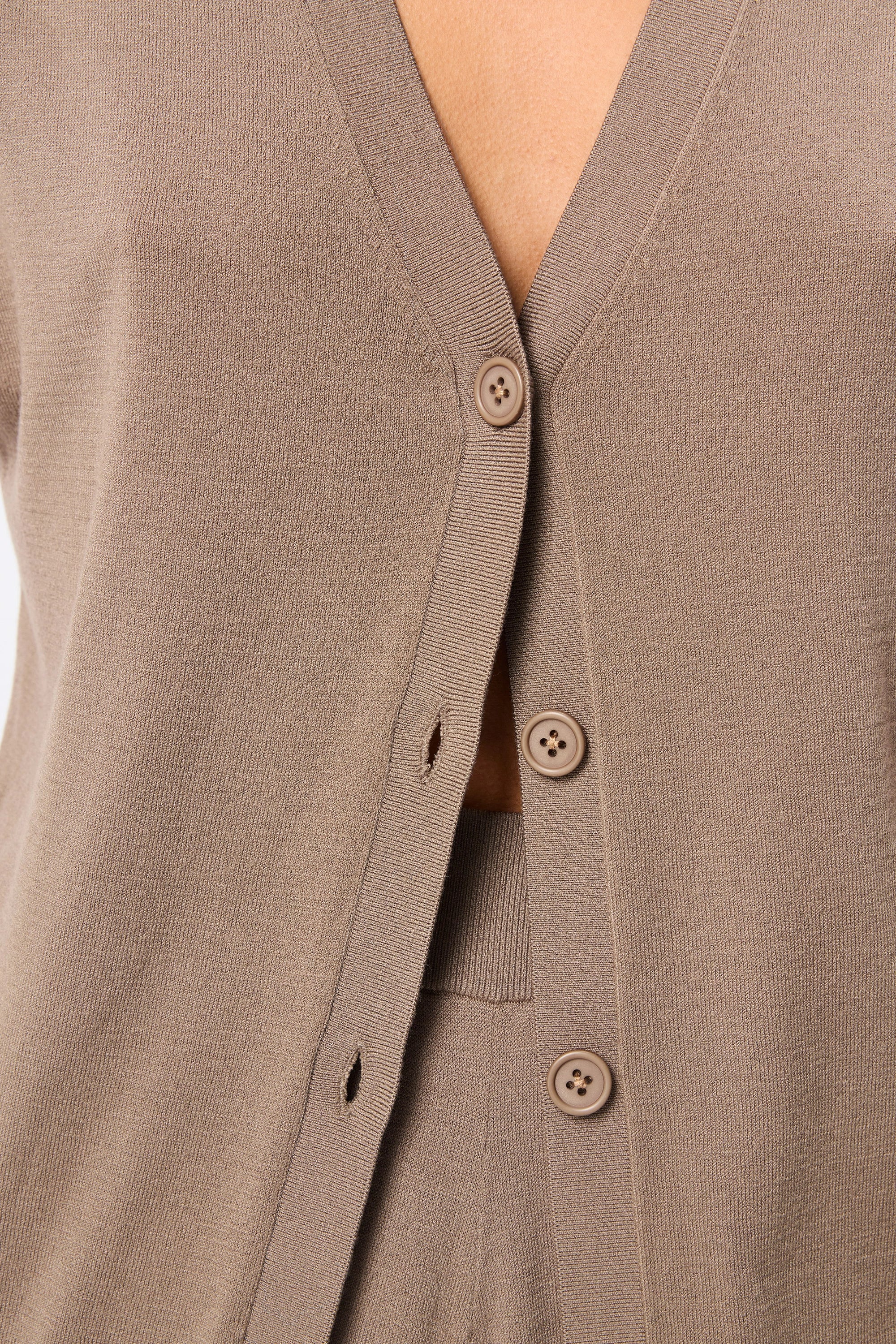The Once Again Knit Vest in Olive is the definition of effortless summer layering. Crafted from a premium lightweight knit fabrication, this relaxed silhouette features a V-neckline, button-front closure, and ribbed trims for a refined finish. Designed for comfort and versatility, it’s perfect for warm days — wear it buttoned up or layered open. Pair with the Once Again Knit Short for a coordinated look, or mix and match with tailored pieces for an elevated casual style.