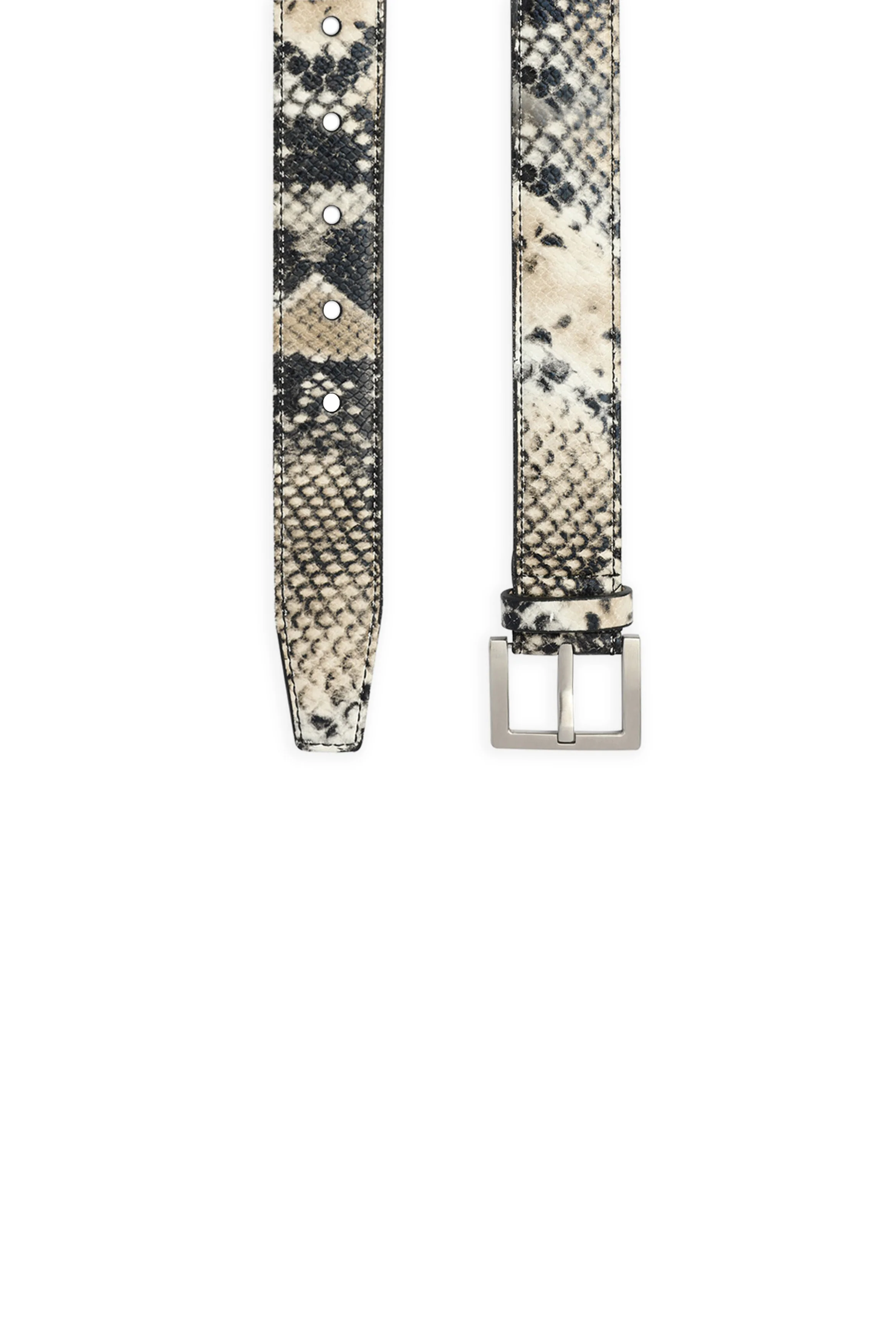 Wildly versatile. The Classic Belt in a python print is made for standout styling. With a natural snakeskin texture and cool-toned silver buckle, this piece brings an elevated edge to minimalist looks. Its slim silhouette and subtle grain give it distinctive appeal without overpowering. Pair it with sleek monochrome or layered prints — a confident accent for bold dressers.