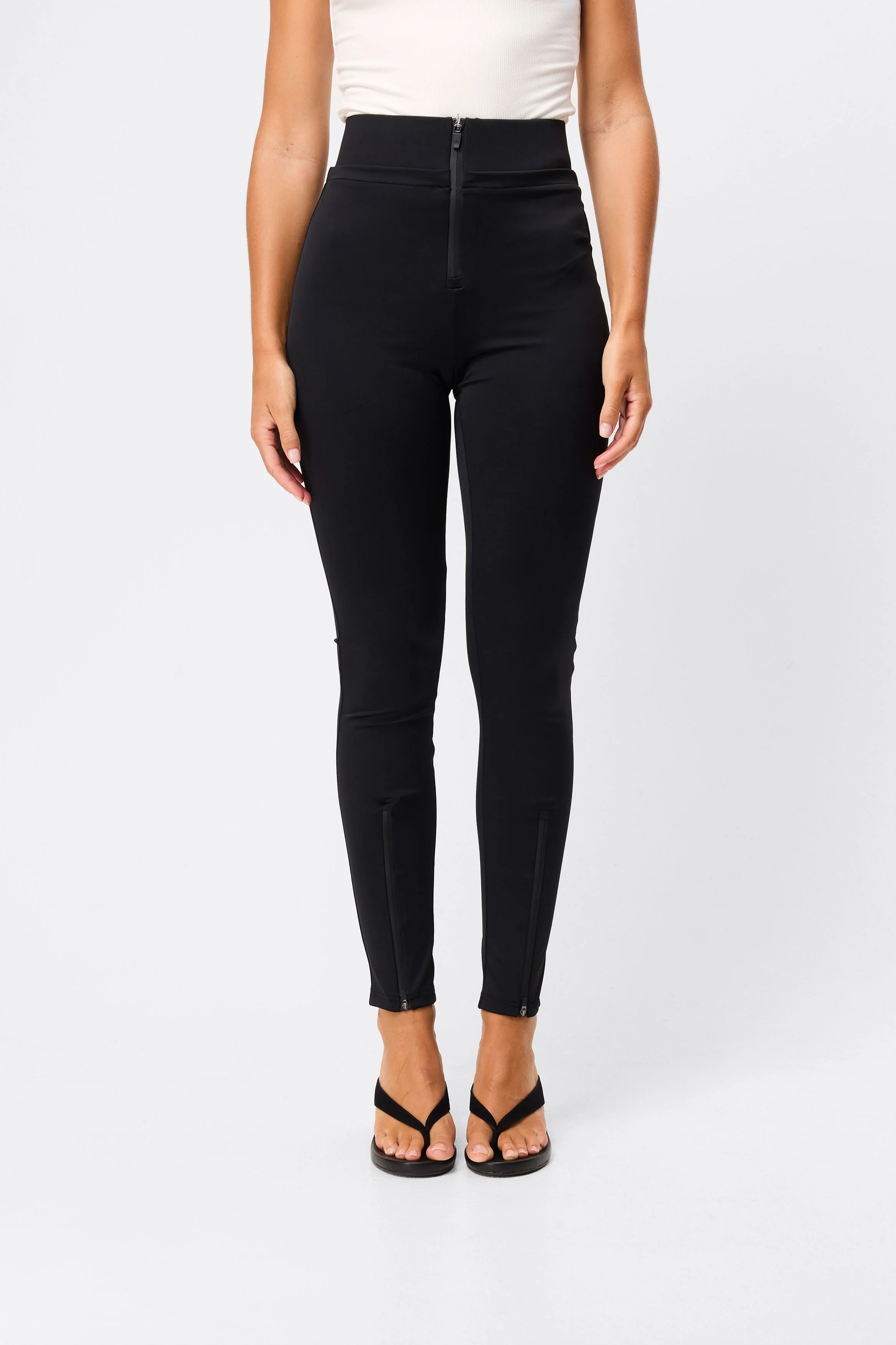 A modern take on a classic, the Defensive Pant in Black is a sleek wardrobe essential. Designed with a form-fitting silhouette, it features zip detailing at the centre front and ankles for a subtle edge. Style with a tank and sneakers on the weekend, with a blazer and shirt for work, or dress it up with heels and a statement top for evening plans. Effortlessly versatile from desk to dinner and everywhere in between.